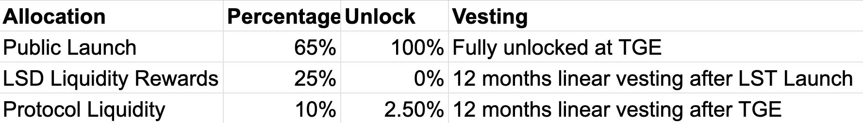 LST Liquidity Rewards 25% - these are tokens used to reward LST holders. These will not be released until 12 months after the LSTs have launched.